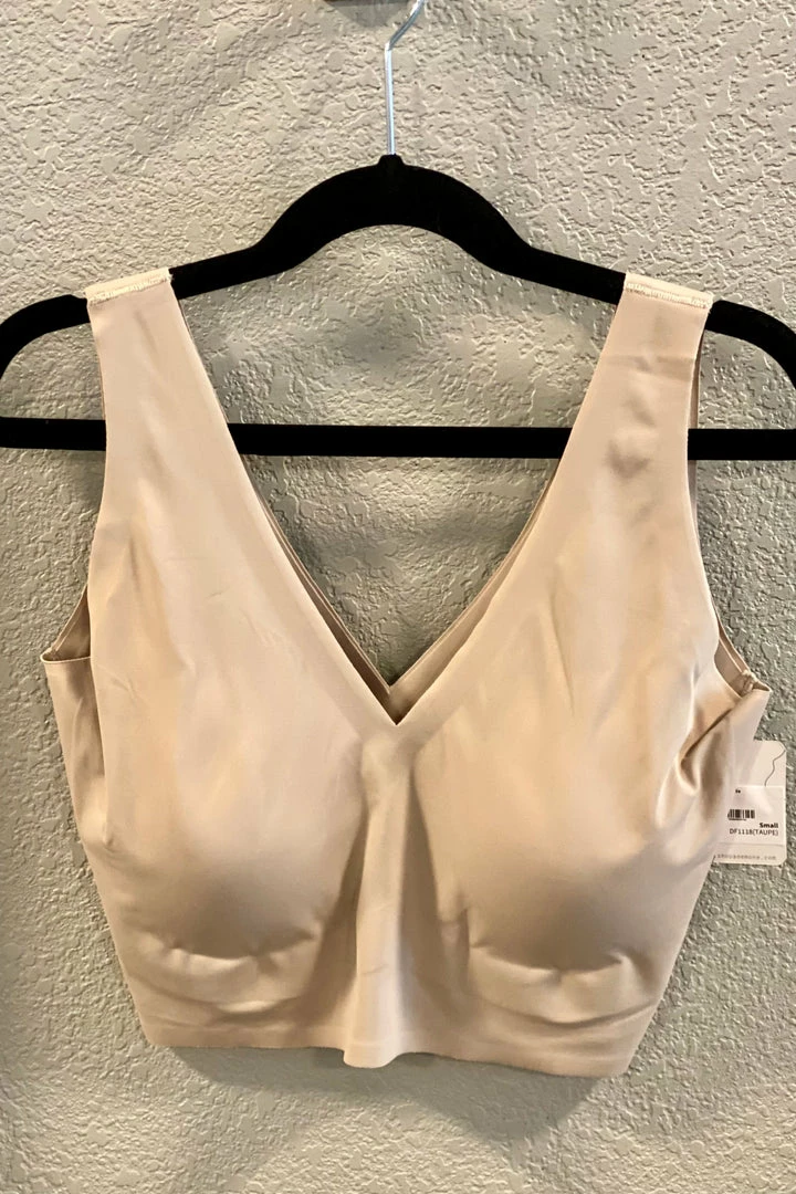 NEW amazingly comfortable wireless bra, so comfy it feels as if you are wearing nothing. Seamless, very smooth and soft fabric that comfortably holds you up, great amount of support, removable pads.