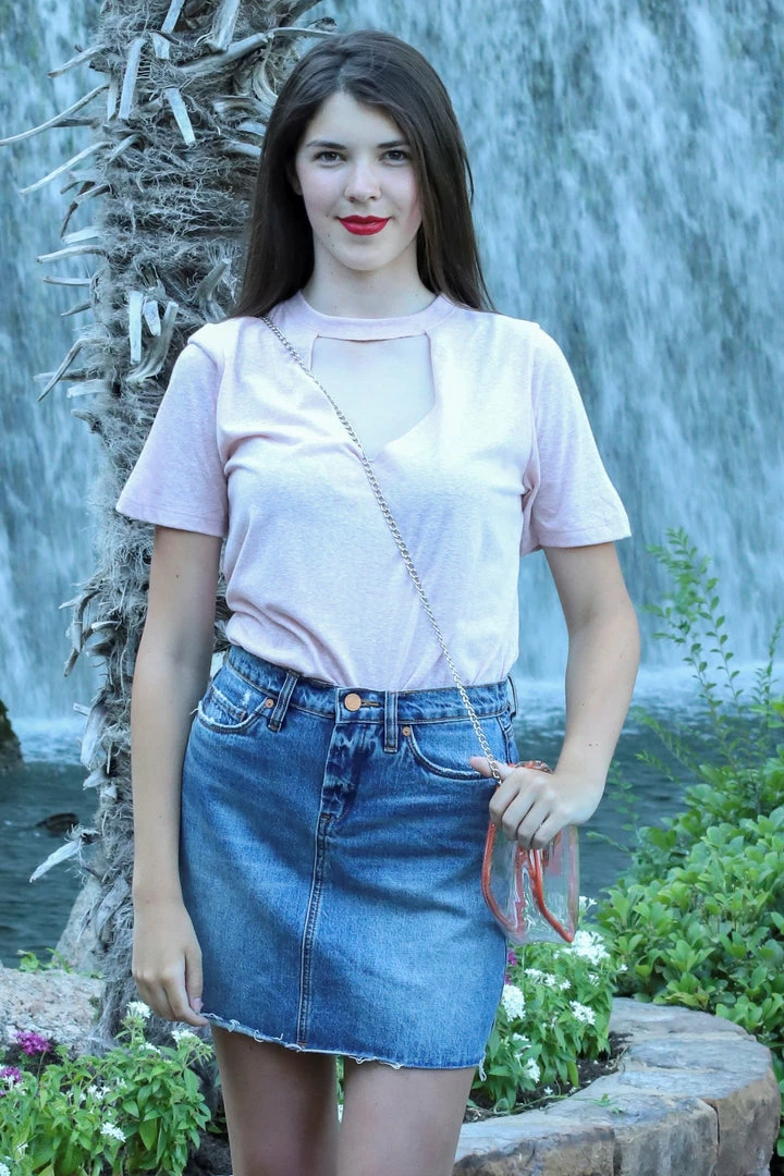 Classic denim mini skirt.