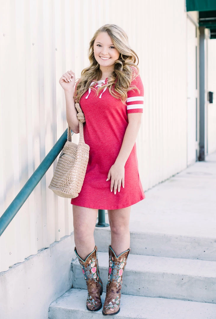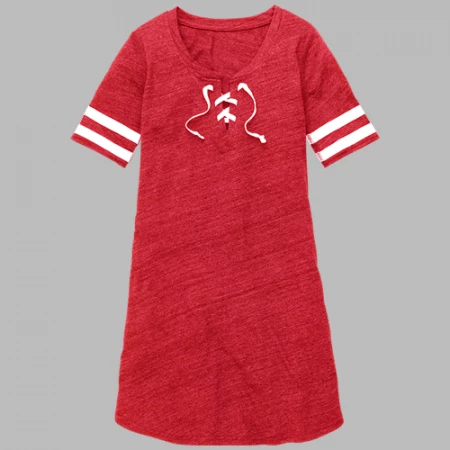 This modish lace up V-neck dress by Boxercraft relaxes nicely against the feminine shape without sacrificing a casual comfy fit!