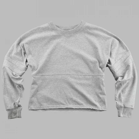 Featuring a mid-chest topstitch, but with a new raw edge and deconstructed bottom hem that screams vintage vibes.