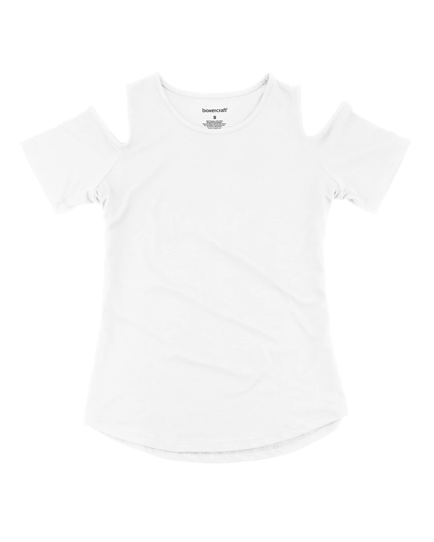 In this ultra-flattering Cold Shoulder Tee from Boxercraft, you’ll be setting a new standard for shoulder-less flair.