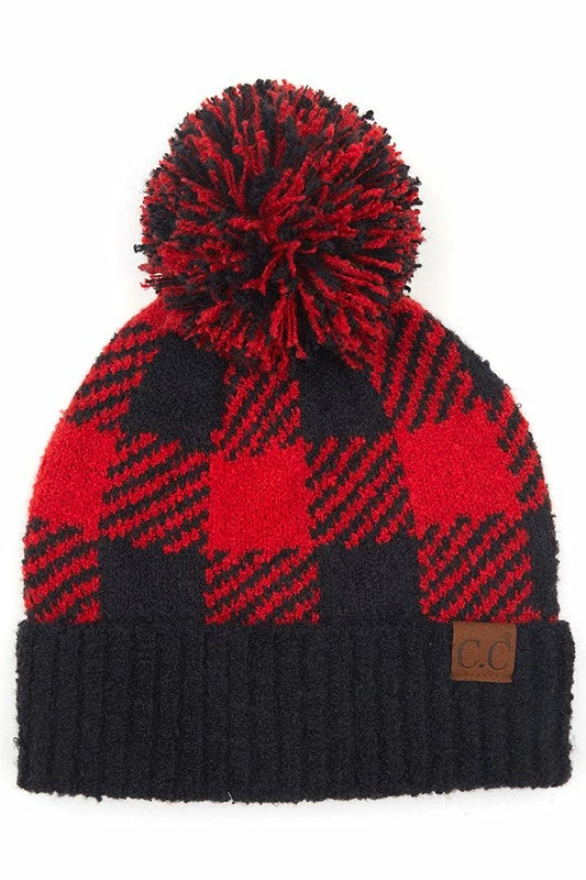 C.C buffalo check jacquard kit hat with knit pom