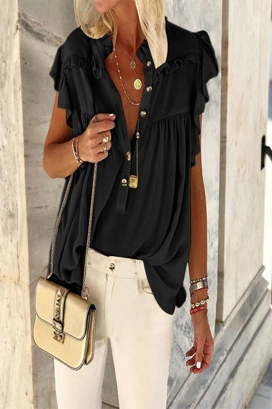 Ruffle detail button down casual top