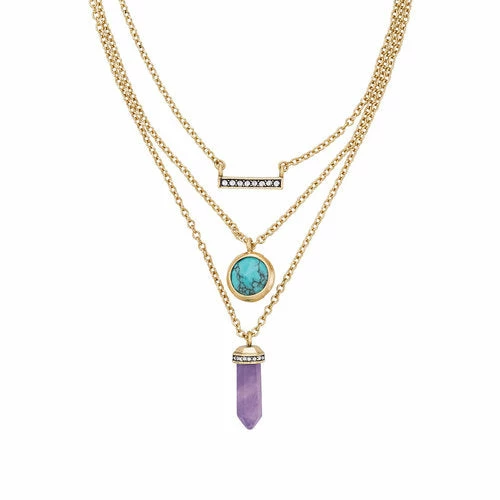 can be worn as 3 individual pendants, semi-precious amethyst + turquoise, clear crystal pavé