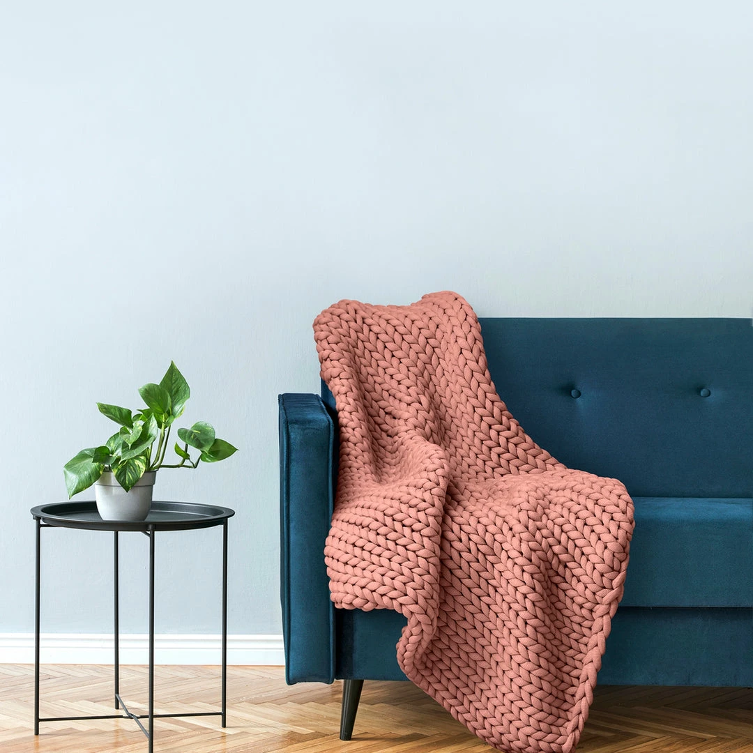 The giant chunky knit stitches add dimension and texture to any home decor.