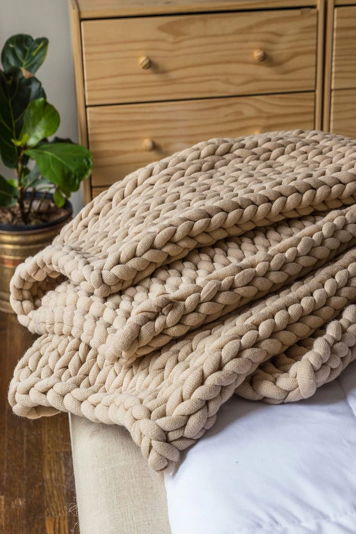 These chunky knit throws are made from very soft, thick, warm acrylic yarn that gives you all the luxury of a chunky knit blanket without having to use wool.