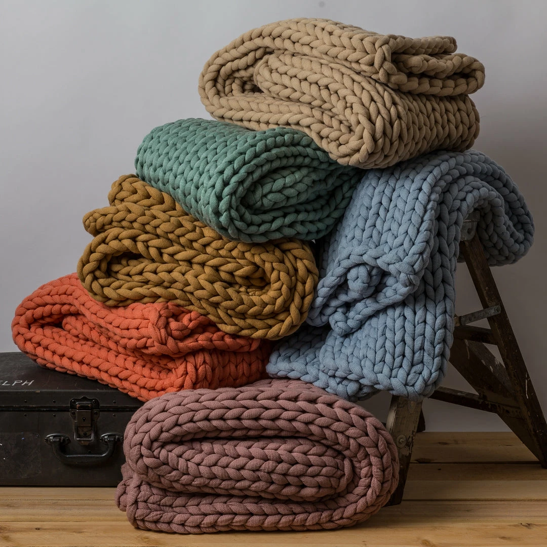 These chunky knit throws are made from very soft, thick, warm acrylic yarn that gives you all the luxury of a chunky knit blanket without having to use wool.