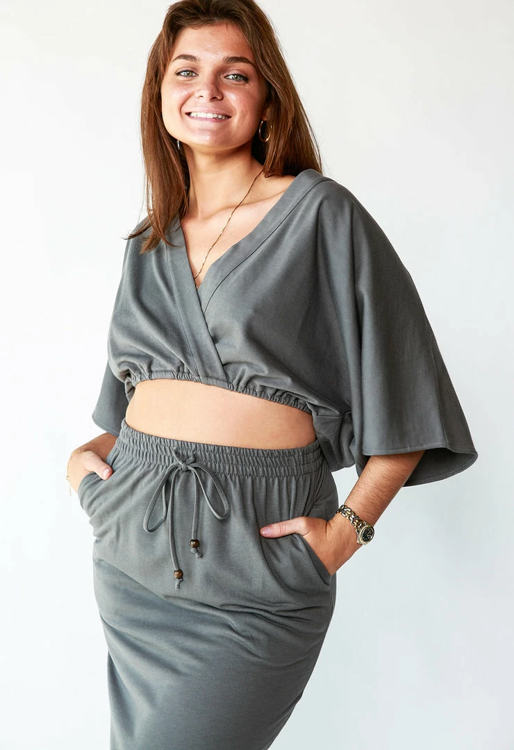 With a relaxed fit, kimono-style arms and deep v neckline, you’ll feel comfortable while looking chic all day long. Plus, it’s made from brushed organic hemp, which means it’s soft to the touch as well as gentle on our planet.
