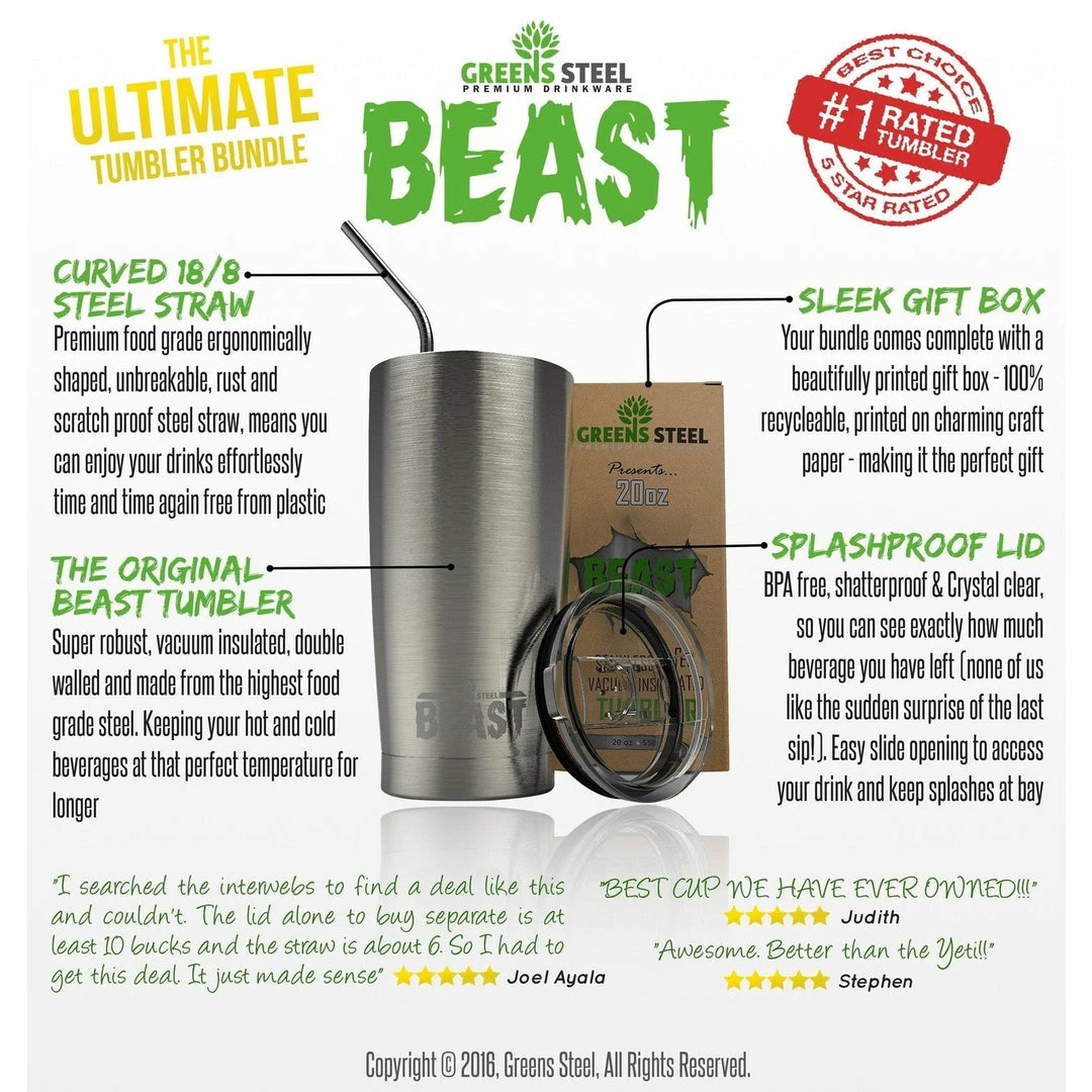 EXCLUSIVE BONUS BUNDLE With so many second-rate Stainless Steel tumblers available on the market, Green Steel sets themselves apart from the competition!