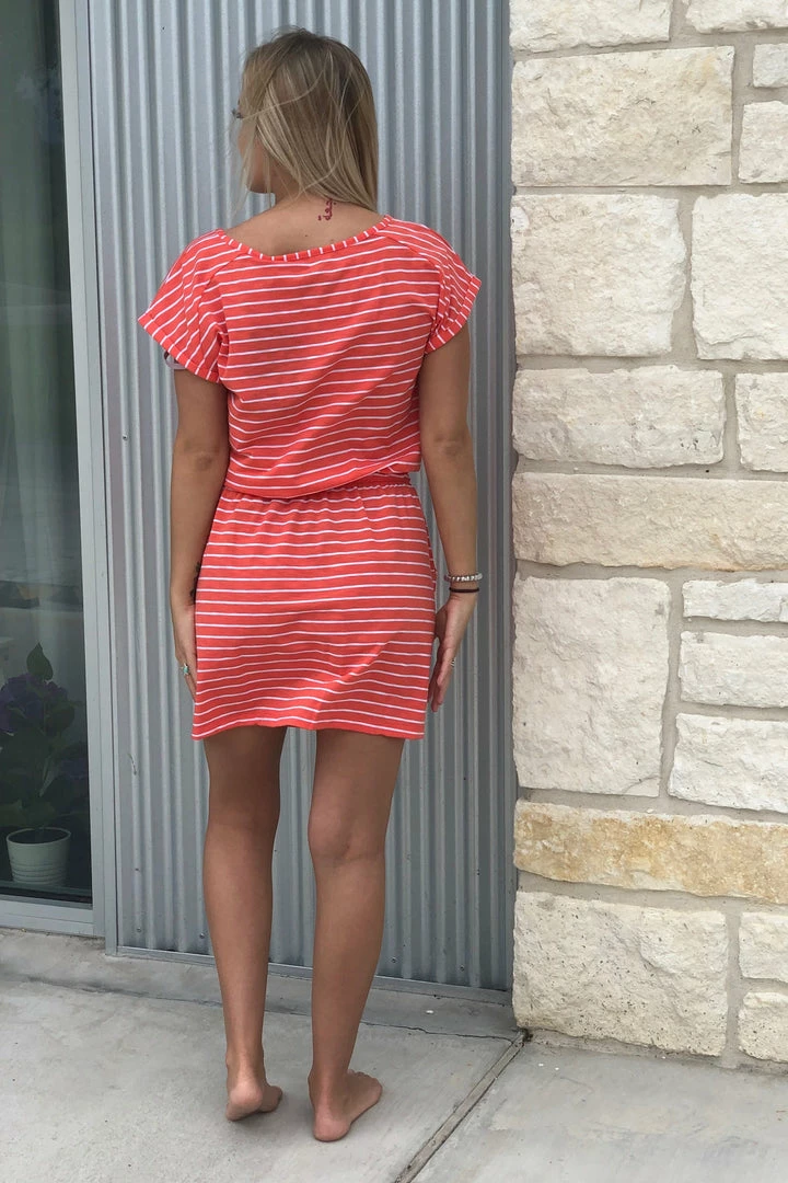 Spend all day at the lake or on the boat enjoying the nice weather and feel comfortable while you do it. The airy, loose fitting TRAVEL STRIPED DRESS makes your day a little more carefree.Â