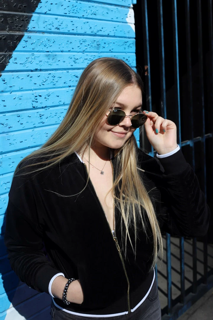 Get in touch with your soft side in this plush velour jacket with a bomber-inspired silhouette.