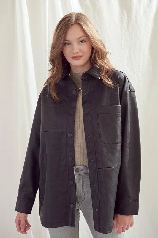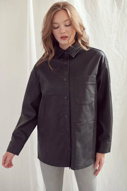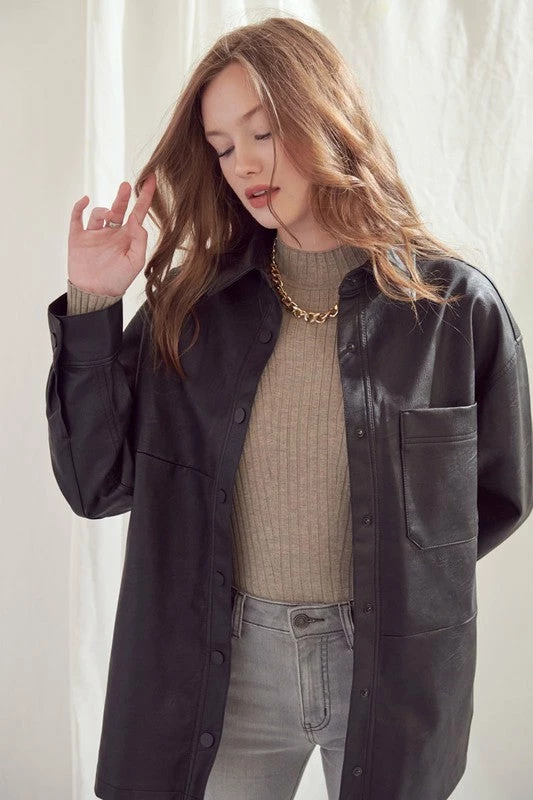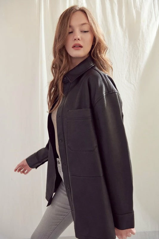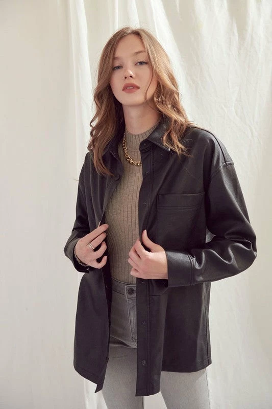 KanCan Phoebe Oversized Faux Leather Shirt Jacket