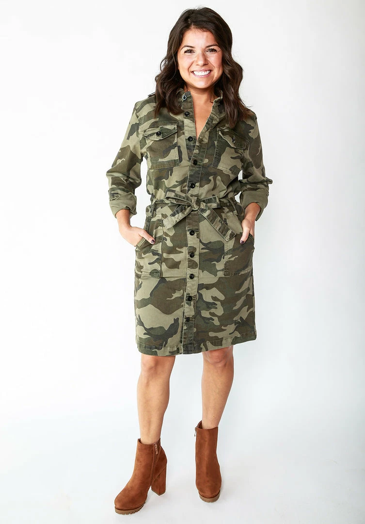 Button down camo shirt dress.