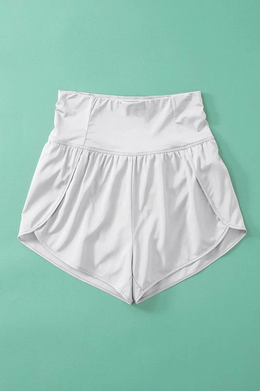 These high waist track shorts are perfect with your favorite T-shirt or over your swim suit.