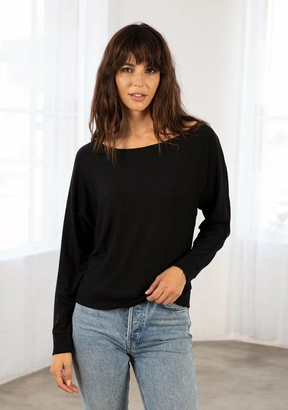 Casual and chic French Terry pullover knit sweatshirt featuring long dolman sleeves and ribbed detail.