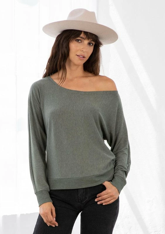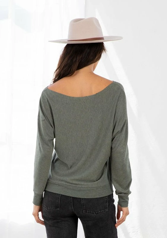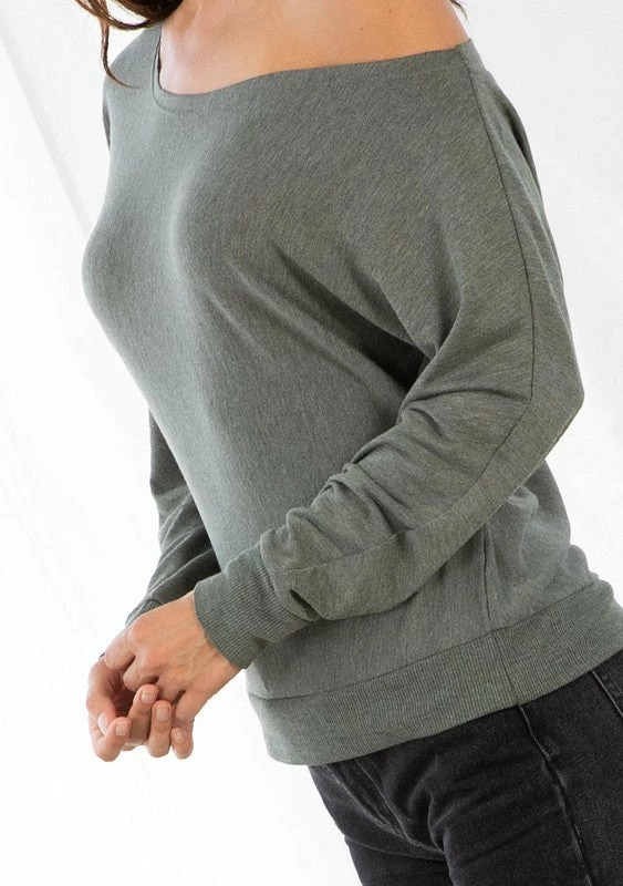 Casual and chic French Terry pullover knit sweatshirt featuring long dolman sleeves and ribbed detail.