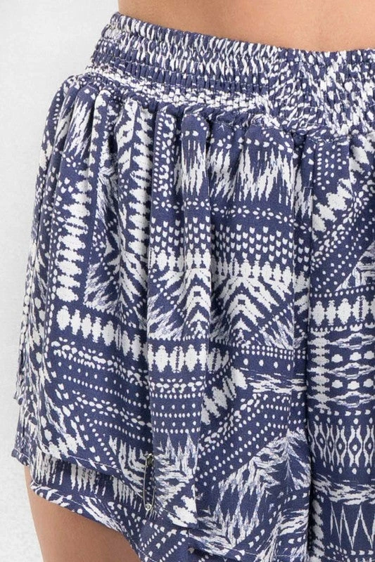 Summer bohemian shorts featuring a pretty diamond geometric print.