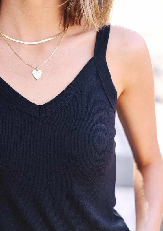 Featuring a v neckline, a chunky spaghetti strap, a relaxed fit, and a super soft hand feel.