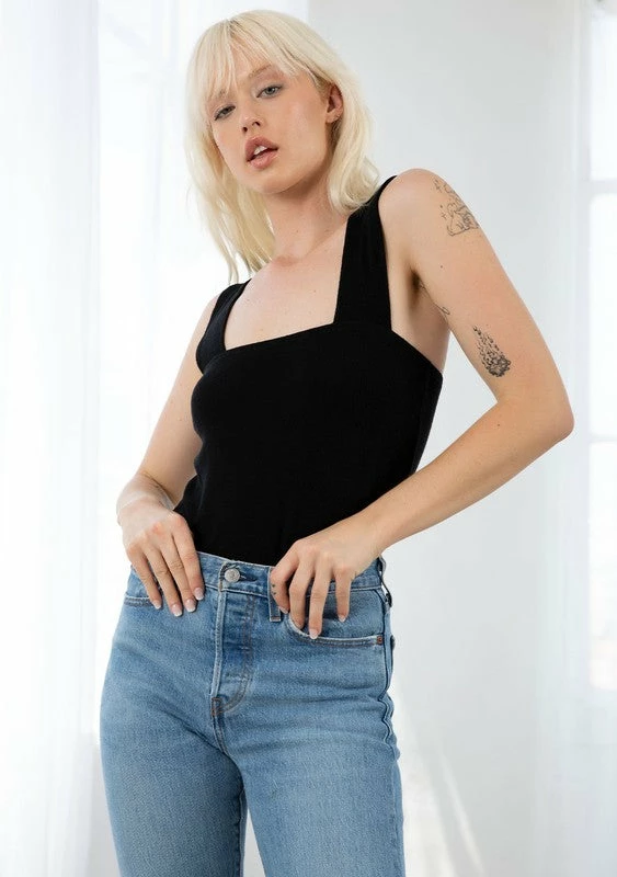 Featuring a square neckline, a wide strap, a v back detail, a stretchy slim fit, and a super soft hand feel.