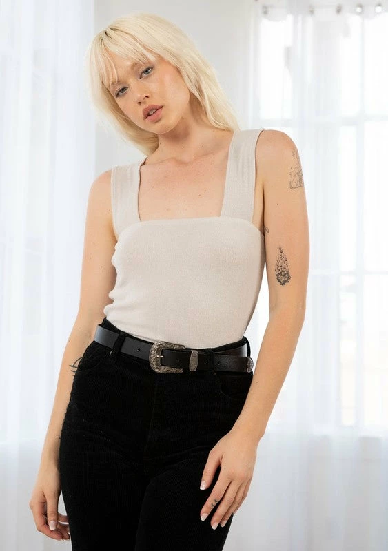 Featuring a square neckline, a wide strap, a v back detail, a stretchy slim fit, and a super soft hand feel.