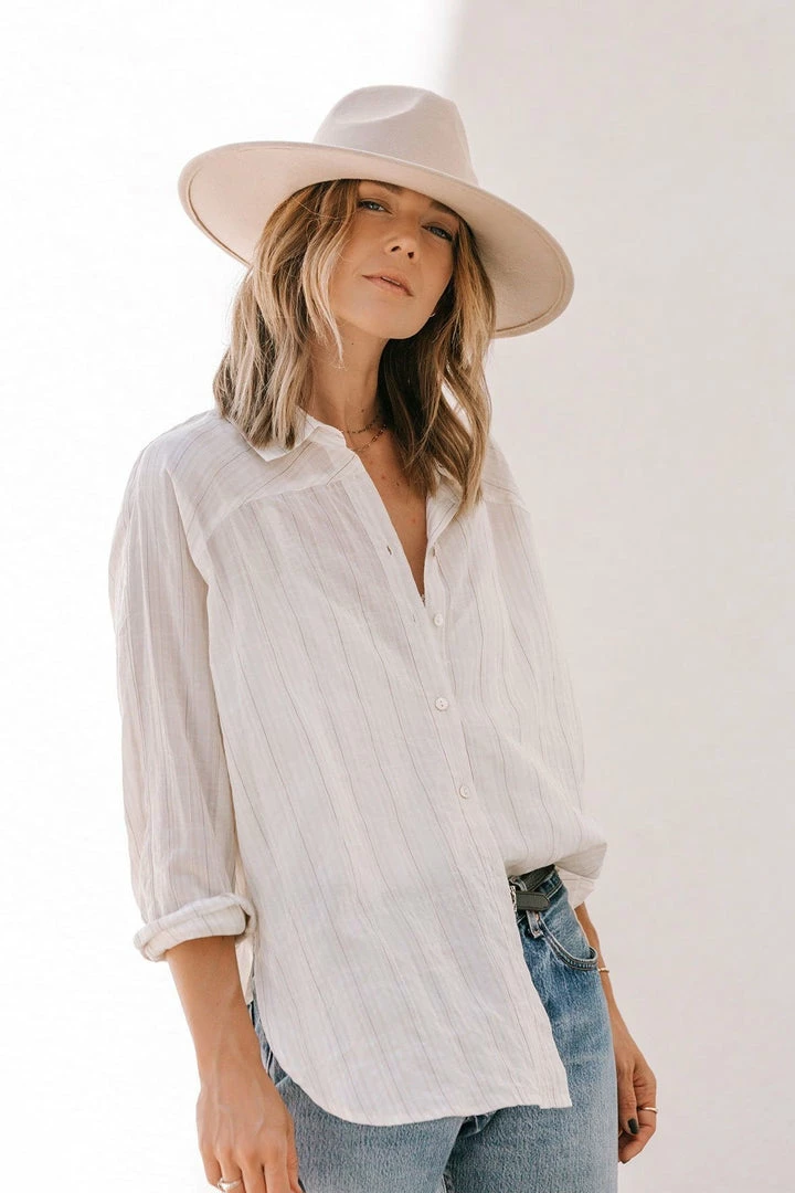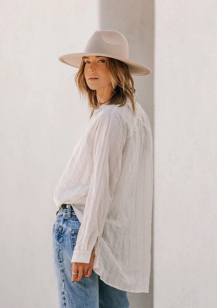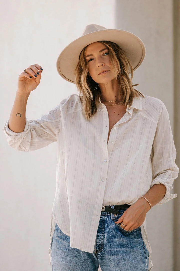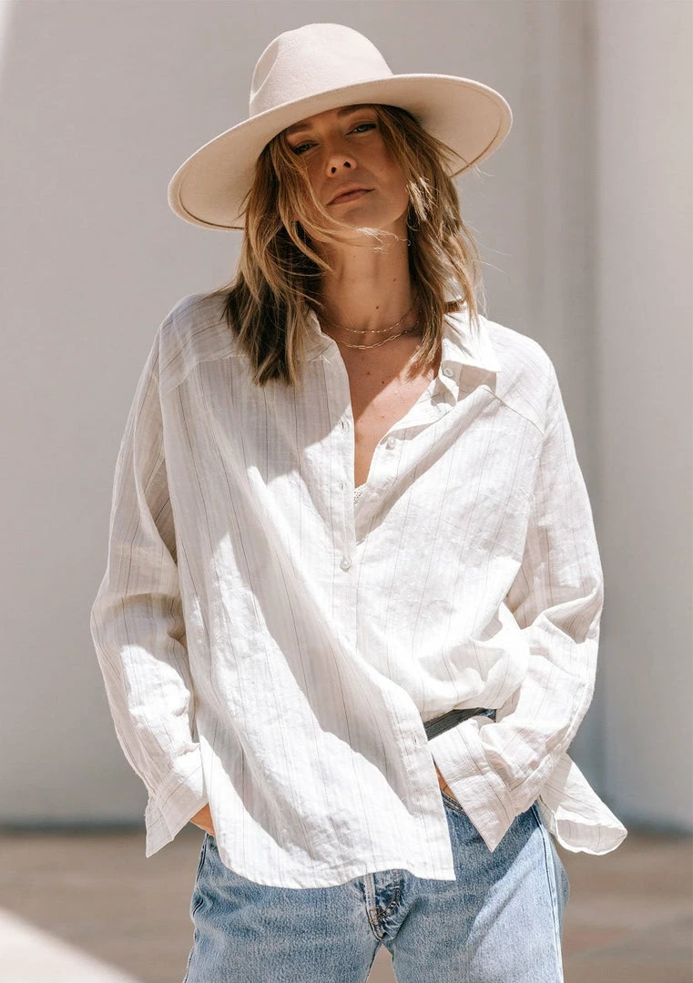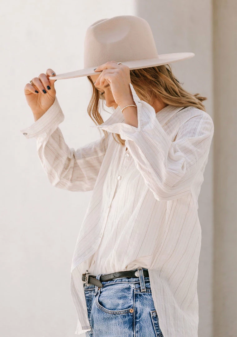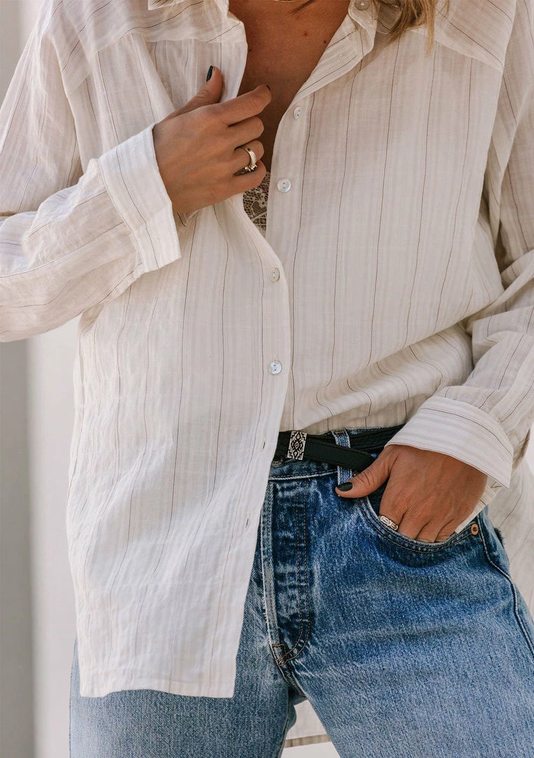 Give your boyfriend’s shirt a break and try this effortlessly cool lightweight button-up in a subtle yarn-dye stripe. Perfectly tailored for that classic oversize look and feel, this flattering top features a cross yoke detail in the back and side vents. Tie it up in the front, tuck it into trousers, or wear it unbuttoned over a cami with jeans, the possibilities are endless with this essential style.