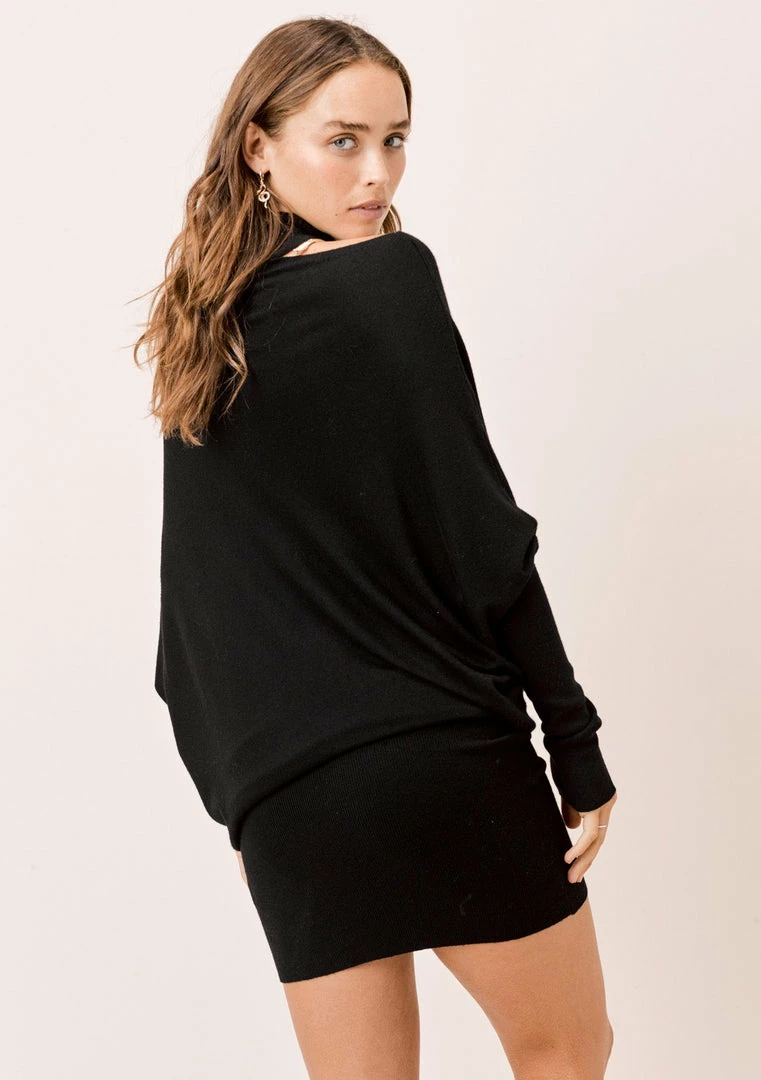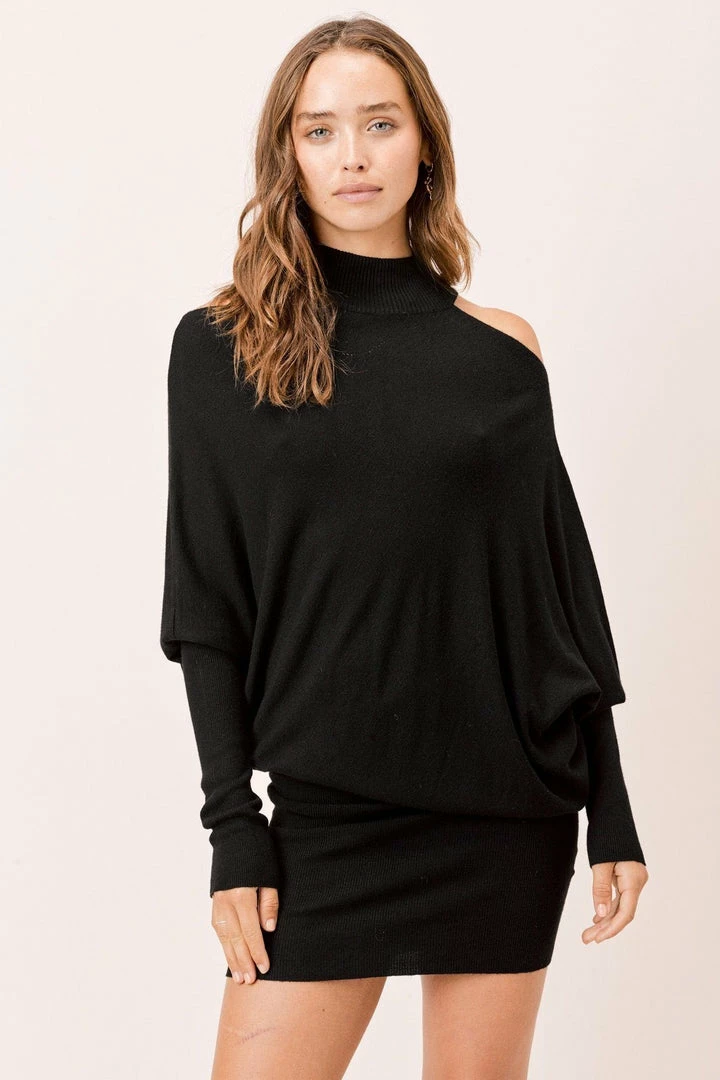 Super soft with the right amount of stretch, our mini sweater dress will keep you cozy and retain its shape. The long sleeves and asymmetrical oversized top offer coverage, while the fitted mini skirt lends a flirty vibe.