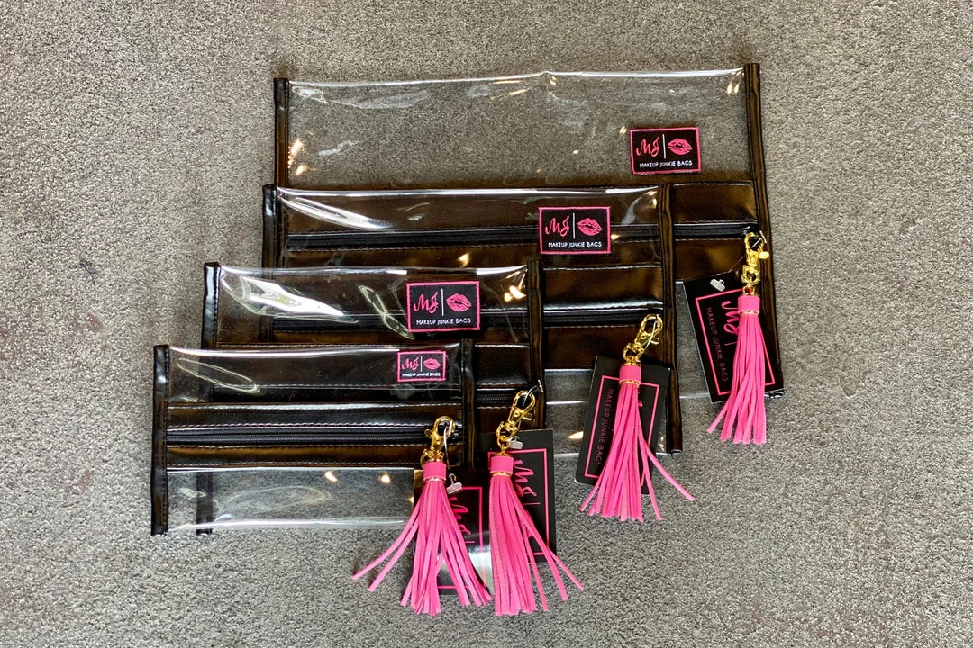 Makeup Junkie designers ensure that each handcrafted In The Clear bag comes with a coordinating Zipper and coordinating tassel.