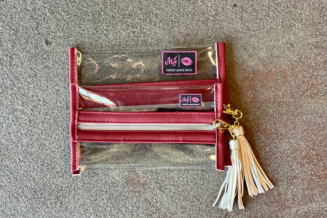 Makeup Junkie designers ensure that each handcrafted In The Clear bag comes with a coordinating Zipper and coordinating tassel.