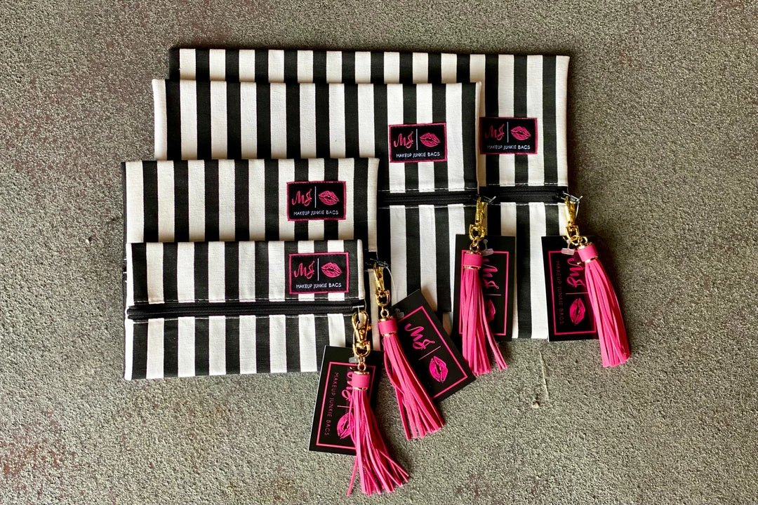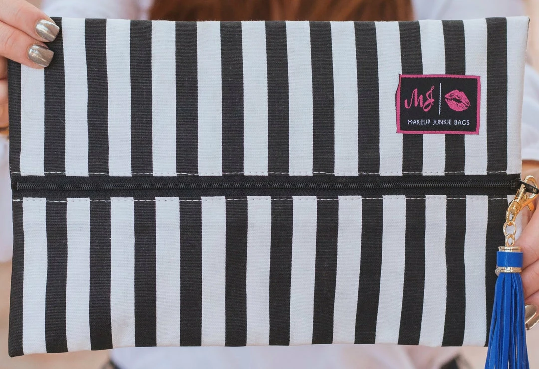 Makeup Junkie designers ensure that each handcrafted Glam Stripe bag comes with a onyx zipper and color coordinating tassels.