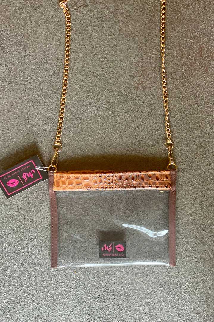 Makeup Junkie In The Clear COGNAC BUBBLE GATOR Crossbody BAGS