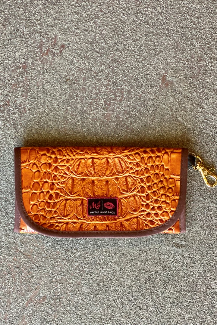 The El Dorado Sunglass Case features Makeup Junkie’s vegan gator exterior with a Dark Teal velvet interior.Â