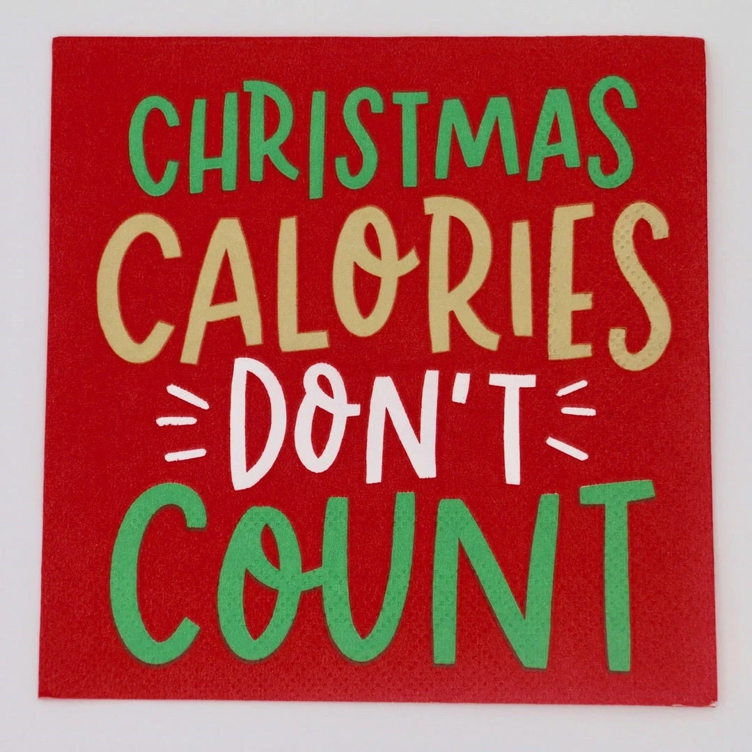 Christmas Calories Don’t Count Cocktail Napkins These holiday themed beverage napkins are perfect for tabletop decoration and add a touch of the holidays to any occasion. These soft and absorbent napkins help in cleaning stains and spills with great ease. You can use these paper napkins for any gathering or party. The party themed design on the napkins makes them a great fit for any holiday occasion.