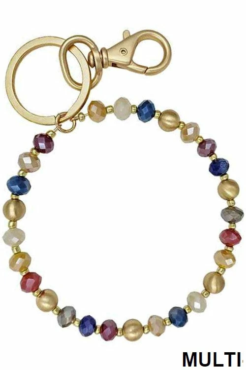 HIGH POLISH SATIN METAL BALL WITH GLASS CRYSTAL BEADS SEED BEADS MIX BIG O KEY RING BRACELET