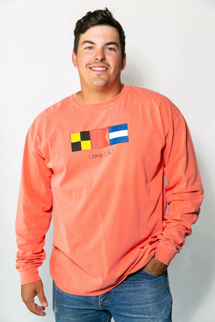 This Comfort Colors hometown tee represents Lake LBJ with the letters LBJ.