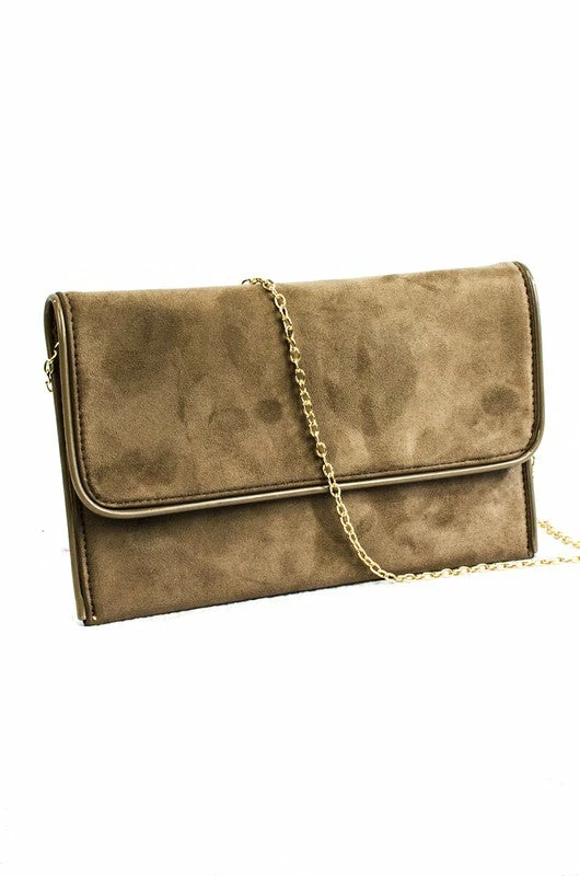Suede Flap Over Clutch With Strap