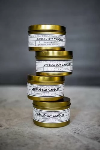 These gold tin soy candles by make the perfect hostess gift or stocking stuffer.