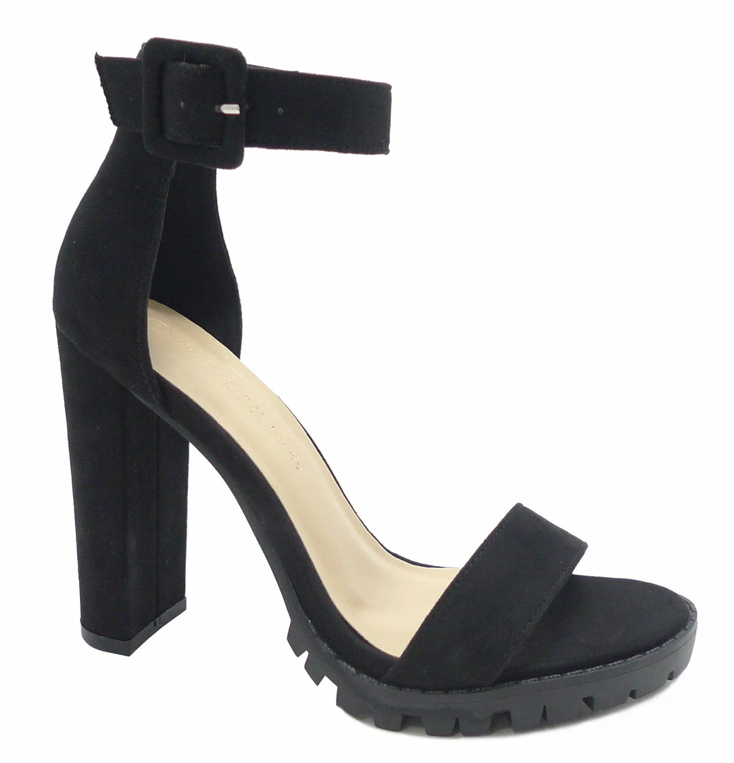 The faux suede strappy heels pair with jeans or that special dress.