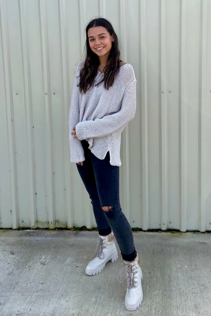 This soft, lightweight and breathable top is knit with a loose construction for an airy feel. The fit is super boxy and slightly cropped. The deep v is super flattering and keeps you feeling cool. Knit using our cotton blend yarn.